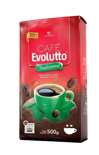 O café torrado e moído tradicional Evolutto é produzido a partir de grãos 100% arábica, possui sabor encorpado e marcante, ideal para quem aprecia uma bebida equilibrada.